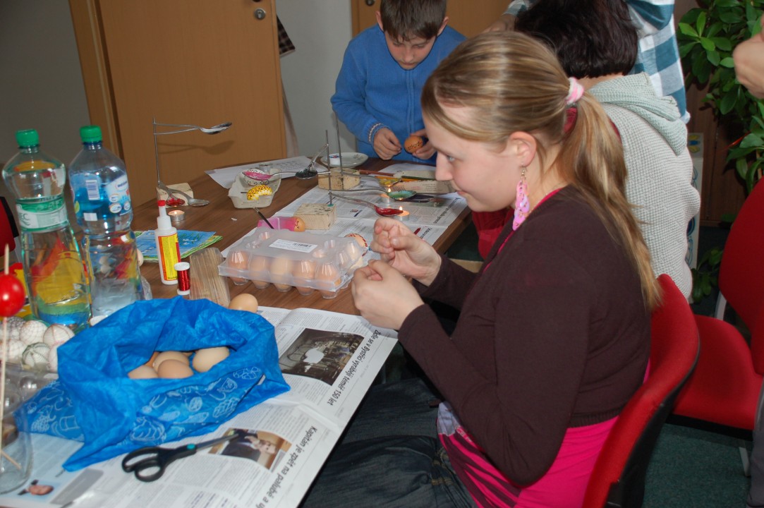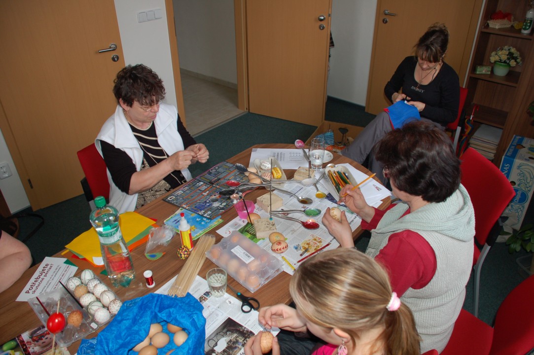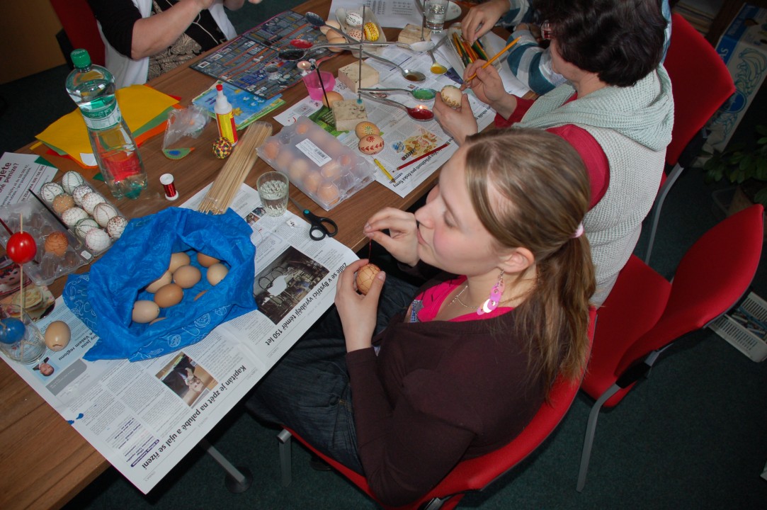 Velikonoční dílna 13.04. 2011 Dne 13.4.2011 pořádala kulturní komise "Velikonoční dílnu". Pro malý počet zájemců se akce konala v kanceláři u starostky obce. Předvedené metody byly velice zajímavé, naučily jsme se různé techniky zdobení vajíček (kresba voskem, krakelování, drátkování aj.).